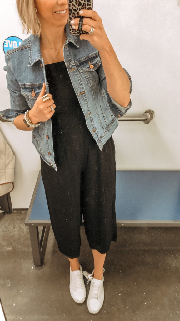 A jumpsuit is a great alternative to a dress. It can easily be dressed up or down, and a black jumpsuit literally goes with everything! Wear it everyday with white sneakers and a denim jacket. Or dress it up layered with a sweater and espadrille wedges. This crop style jumpsuit is perfect for the warmer weather ahead, and to show off your cute spring shoes.