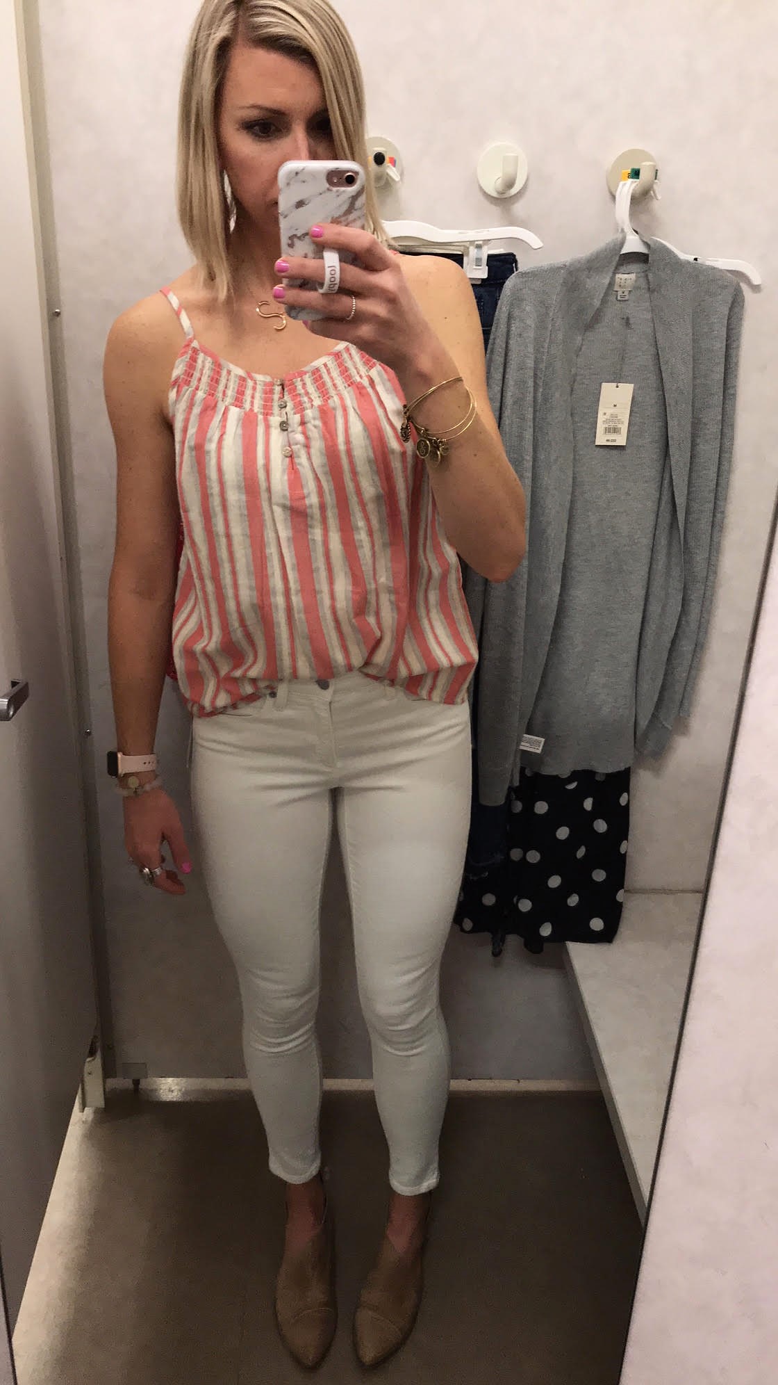 I recently went to Target and did a try on session, which I shared on my Instagram stories, featuring some great Spring basics. I was on the hunt for staples pieces like white denim, shorts, a go-to dress, and easy to wear tops that could easily be incorporated into your existing wardrobe.