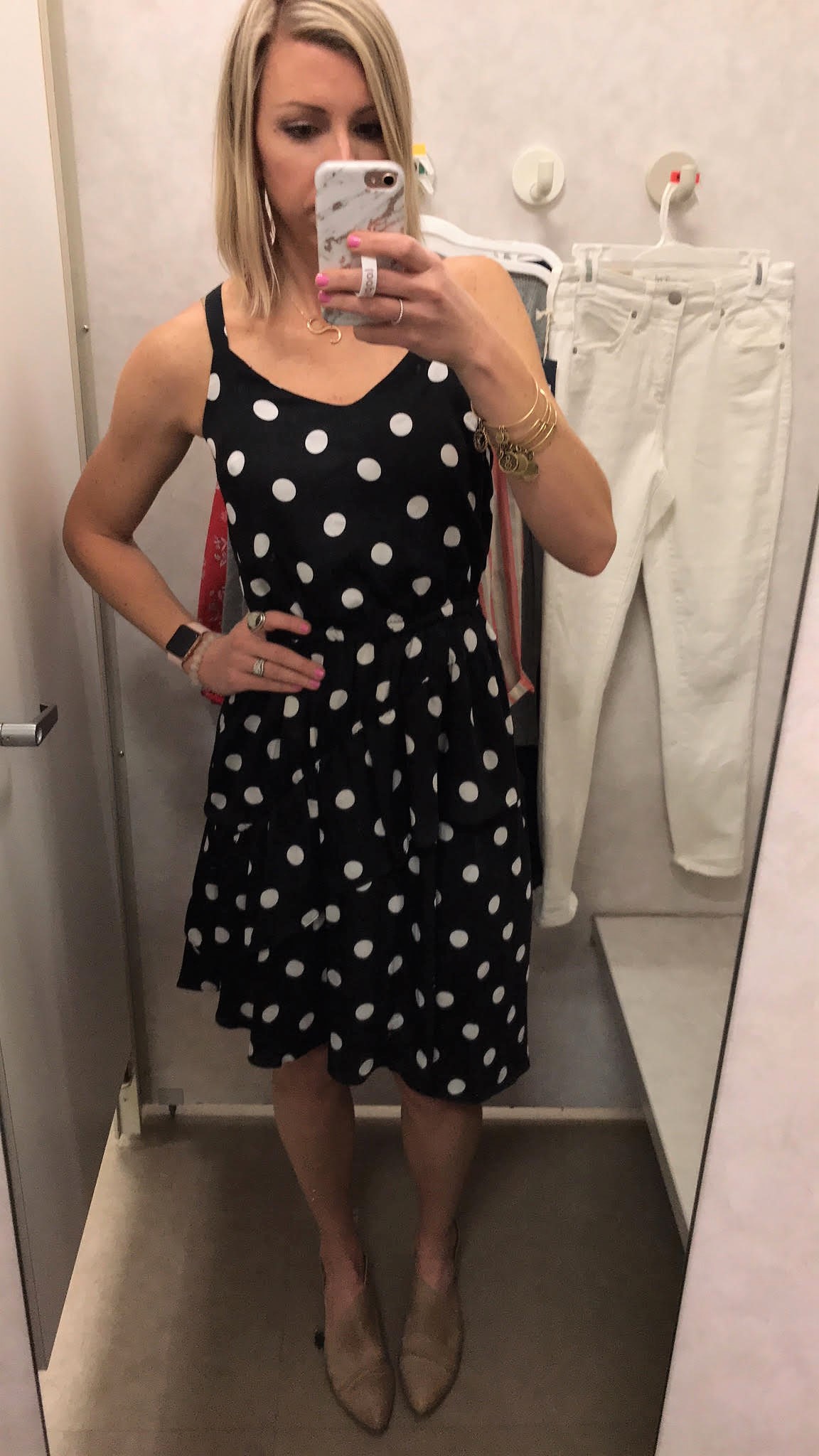 love that polka dot dress on you! I need some more white shirts, you should do a post on that! I just need some good basics to throw on with other things!